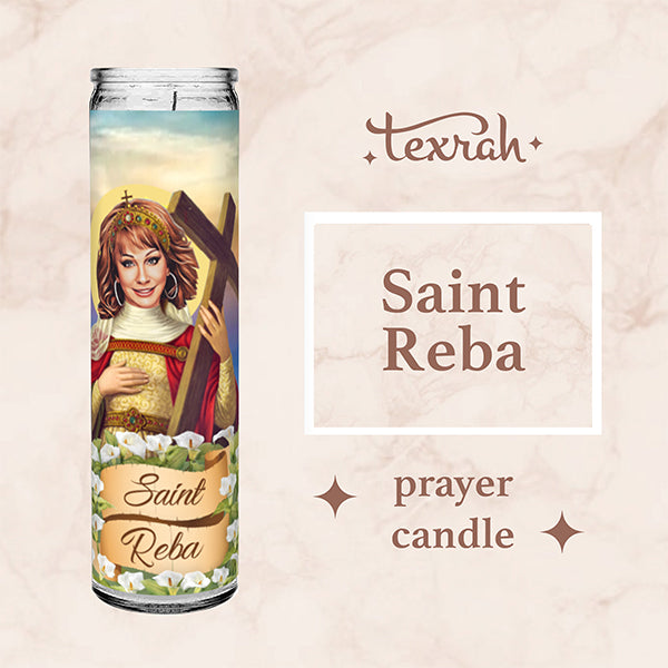 Saint Reba McEntire Celebrity Prayer Devotional Parody Candle - 8" white, unscented glass